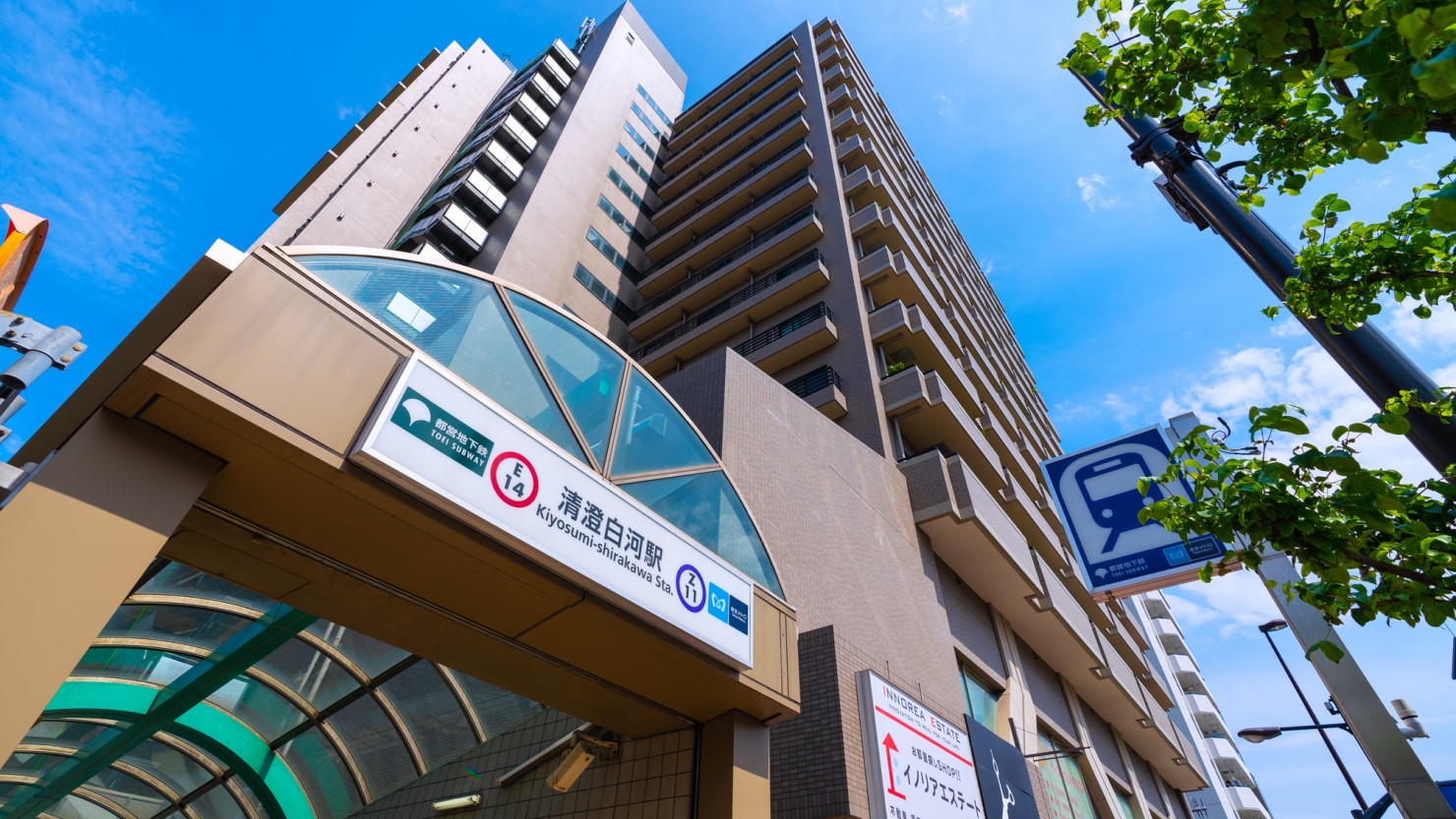 清澄白河駅には、都営地下鉄大江戸線と東京メトロ半蔵門線の2路線が乗り入れており、新宿駅までは大江戸線で約30分、大手町駅まで半蔵門線で約7分と都心へのアクセスが便利です。このエリアには坂道がほとんどなく歩道が広いので、隣の東西線・門前仲町駅まで徒歩13分ほどで行けます。