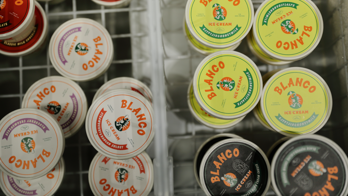 秋山さん:「コンビニと考えた時、最初に『これはないと!』と思ったのは、アイスクリームですね。うちでは、熊本の『BLANCO ICECREAM』という工房のアイスを置いています。熊本県の山都町出身のメンバーで作っていて、できるだけオーガニックな食材を使用して作られているんです。うちだけのフレーバーも作ってもらって」