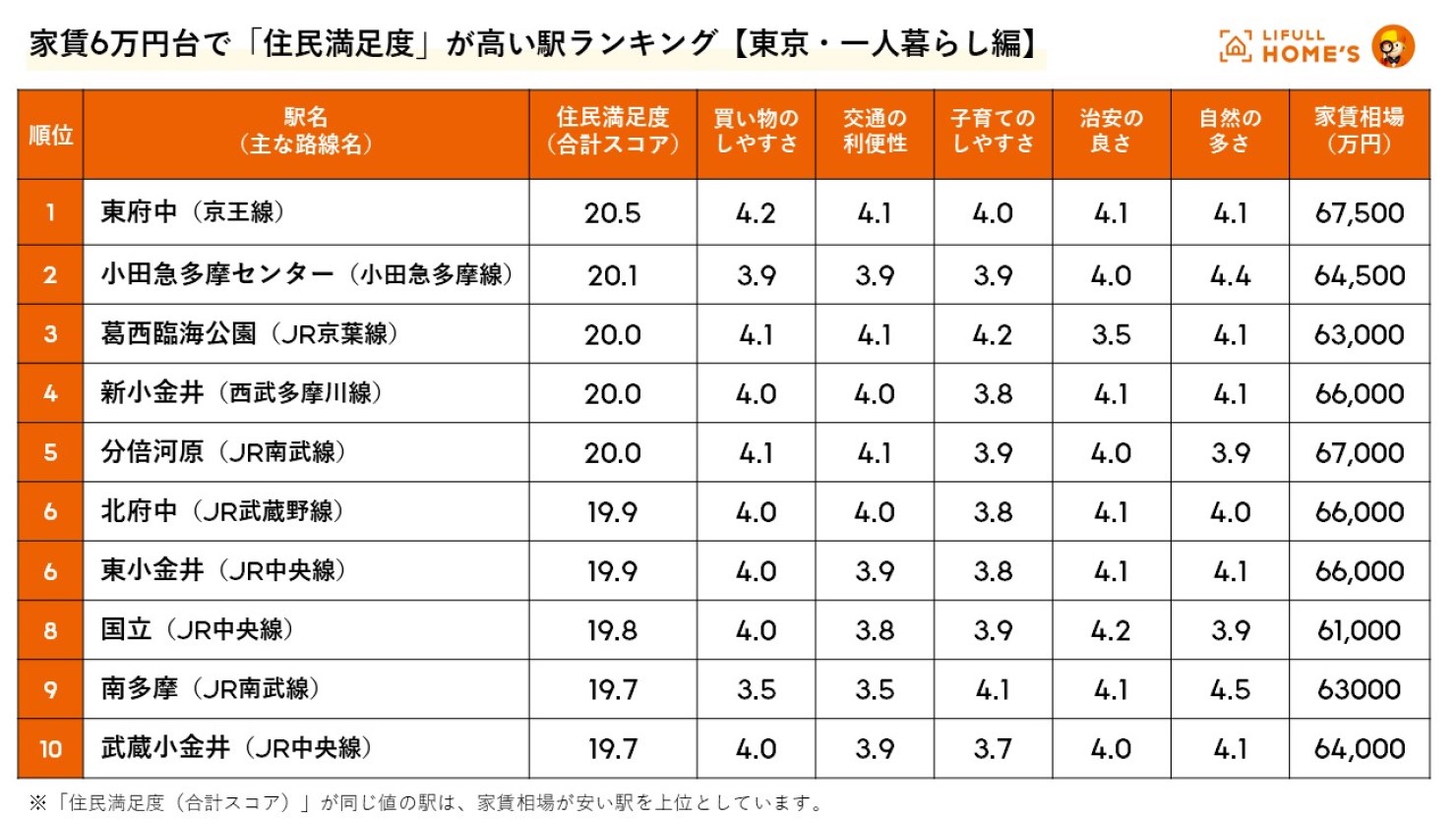 家賃6万円台で「住民満足度」が高い駅ランキング(東京 一人暮らし編)