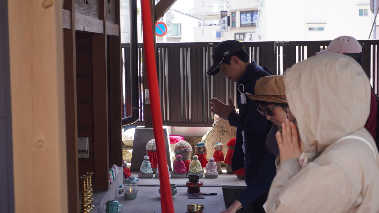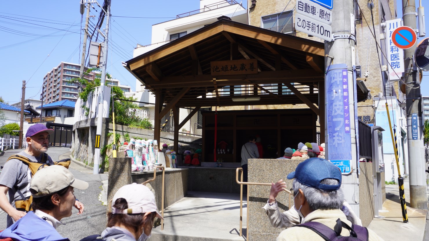 「レバンテ垂水1番館」を右手に、真っ直ぐ銀座通りを進んだY字路の分岐点には、たくさんのお地蔵さんが祀られていました。昭和初期に埋め立てられたため池の底から発見された女性のお地蔵さんを祀ったことから「池姫地蔵尊」と名付けられ、その後、長く銀座通りを守ってきた場所。70、80年前から地域のランドマークとされているそうです。