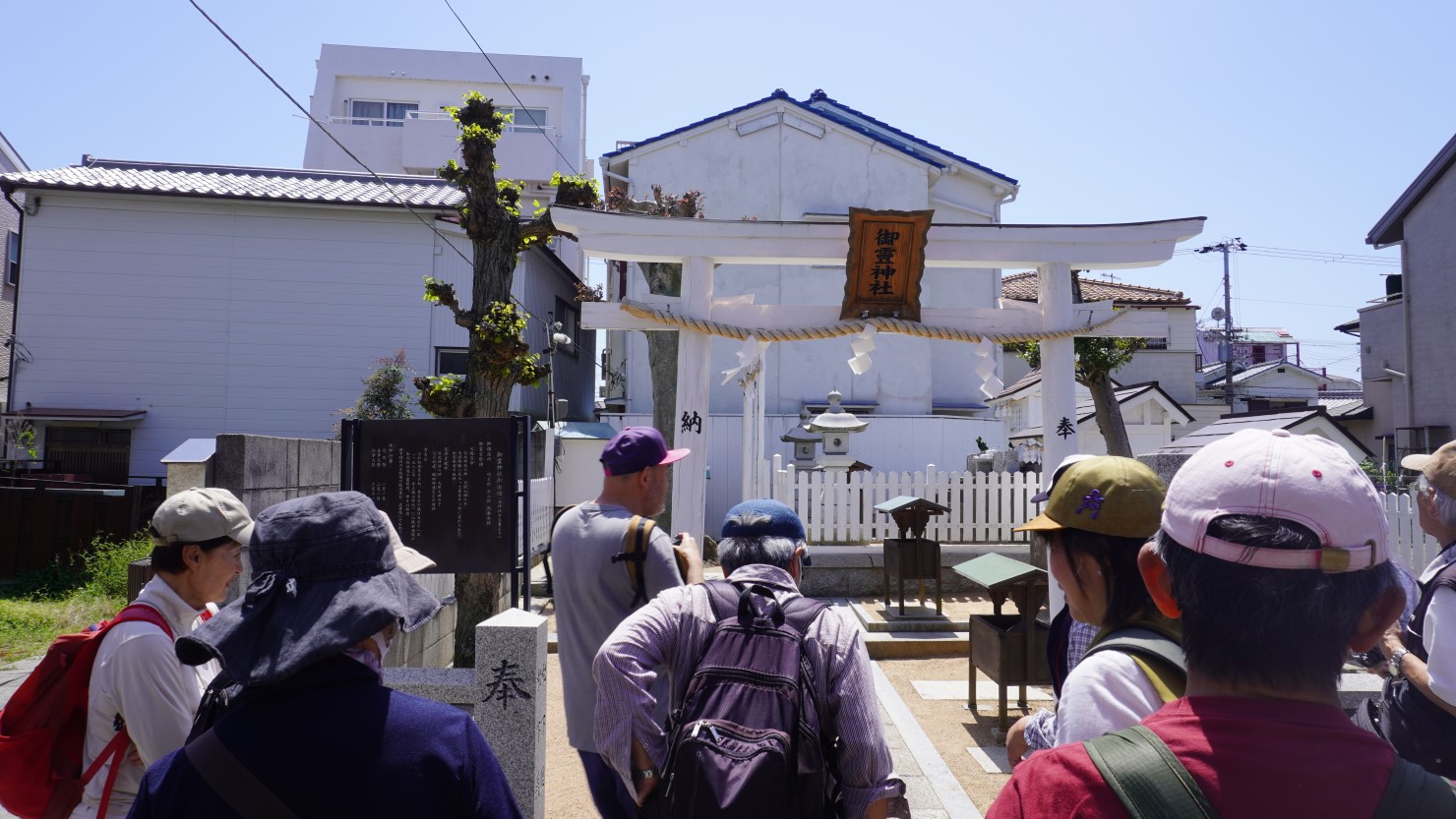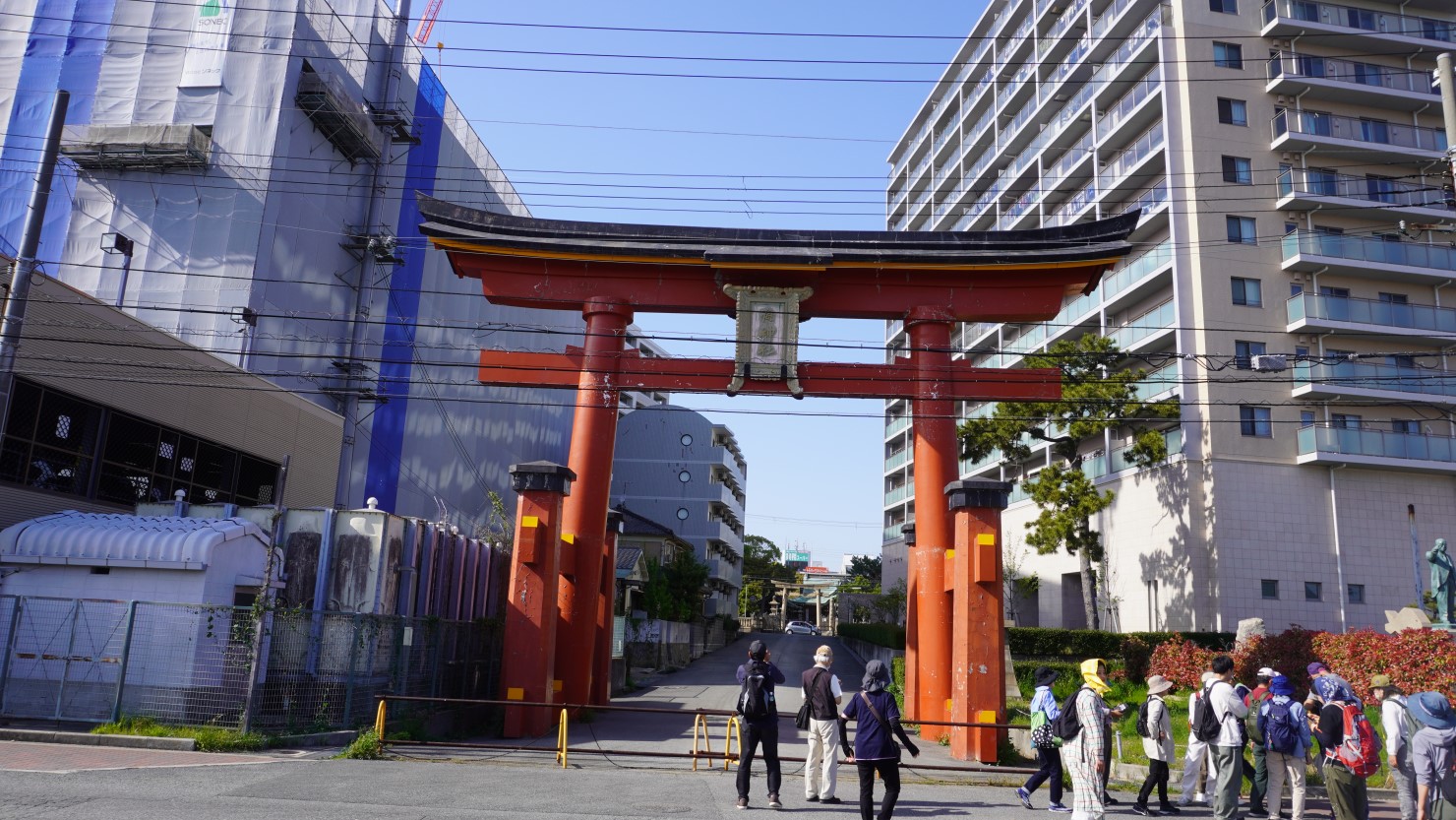 反対から眺めると、海からの視界を遮るように神戸市漁業協同組合の建物が建っていることがわかります。「神様の通り道を塞いでしまって大丈夫か?」と一同総ツッコミ。獲れた海産物の直売や地魚の販売イベントなど、地域になくてはならない施設なだけに両義的な気持ちになりました。