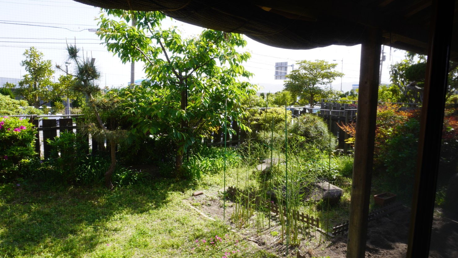 住宅の並ぶ狭い路地を進むと、都市型レンタル菜園を発見。車が入ることができない立地ゆえに空き地となっていたスペースへの対策として、「勝手にまち探訪」で案内人を務めた経験もある散歩活動家、建築士、まちづくりコンサルタントの角野史和さんが打ち出した一策です。2平米の1区画から借りることができ、また無料で利用することのできる道具類もあるので、気軽に野菜作りを楽しむことができます。