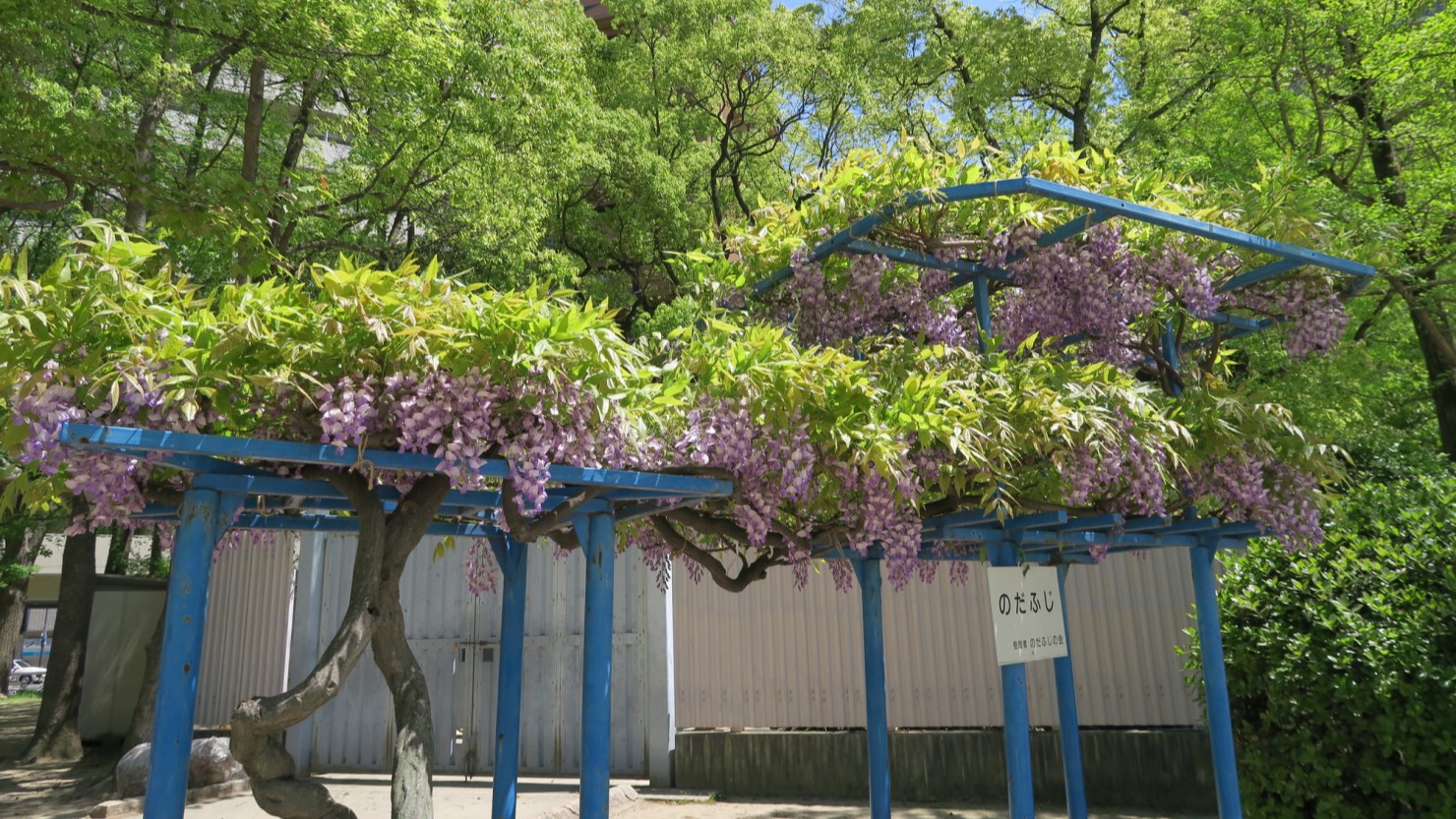 江戸時代に刊行された書物に三大名所として「吉野の桜に野田の藤、高雄の紅葉」と称せられるほど、野田は藤の名所です。品種は福島区発祥とされるノダフジ。戦火に見舞われ一時はほぼ絶滅状態でしたが、地域住民の尽力によって再生した歴史があります。現在も区内に約60ヶ所の藤棚が残り、区の花にも選定。都会でありながら、美しい藤棚が残っているのはめずらしく、歴史や自然を大切している街ということが伝わってきます。