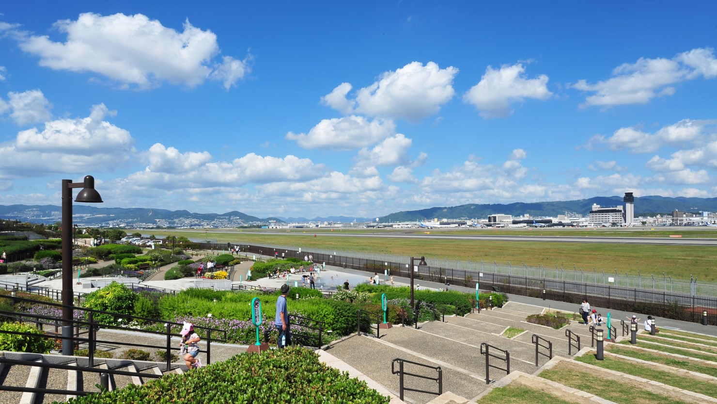 蛍池駅から車で8分のところには入場無料の「伊丹スカイパーク」があります。大阪国際空港の滑走路に隣接する当施設は、スカイテラスや立体迷路など、5つのエリアに分かれています。施設内には約1万4,000本のつつじが咲き誇る丘や噴水、離陸する飛行機を間近で見ることのできるスポットなどがあり、休日のリフレッシュやお子さまとのお出かけにぴったりです。間近で見る飛行機は、大人にとっても子どもにとっても迫力満点です。