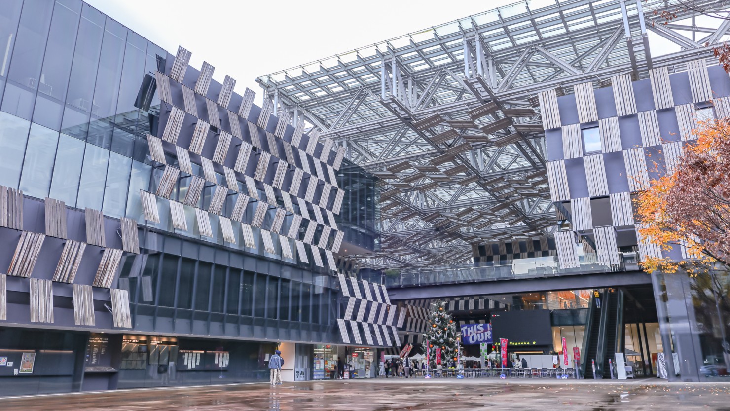2012年にオープンした市役所が一体となった複合型施設。近未来を彷彿させながらも木のぬくもりがあふれる外観の建物は、5,000人を収容できるアリーナや、全天候型のイベントスペース「ナカドマ」も。コンサートやマルシェなど、さまざまなイベントが開催されています。