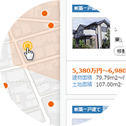 東海の物件を、車での移動時間から探すことができます。「よく行く場所の名前」、「車を運転する時間」、「探している物件の種別」この3つの情報を入力するだけで、移動可能な範囲とそこにある物件が地図上に表示され、分かりやすく見つけることができ、気に入った物件があれば不動産会社へ問合せることもできます。