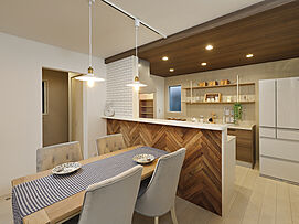 建物価格3,000万円〜3,500万円未満延床面積114㎡(37坪)性能を第一に考えていたので、耐震、断熱・気密の性能が良かったことが一番です。 また、初めての家づくりで、注文住宅という大きな買い物をする中で、資金面のサポートが大きかったのも嬉しいポイントでした。 最初に、お金の勉強会というイベントに参加し、子供を見てもらいながら、家づくりの基本的な流れや、聞いたことがあるけどあまり理解できていない家づくりに関するお金のワード(固定金利、変動金利、フラット35、長期優良住宅、ゼッチなどなど…)をしっかりと教えていただきました。 そういったイベントをしているメーカーを他で見たことがなかったので、この後家づくりを進める中でも安心して相談できると思いました。 もう一つの決めてとしては、木をふんだんに使ったお家が建てられるということです。デザインを重視して選んだわけではありませんが、性能、資金面相談の次に選ぶポイントとして、無垢の木がたくさん使われたモデルハウスを見て、こんなお家が建てられたらいいなと思い、決めました。