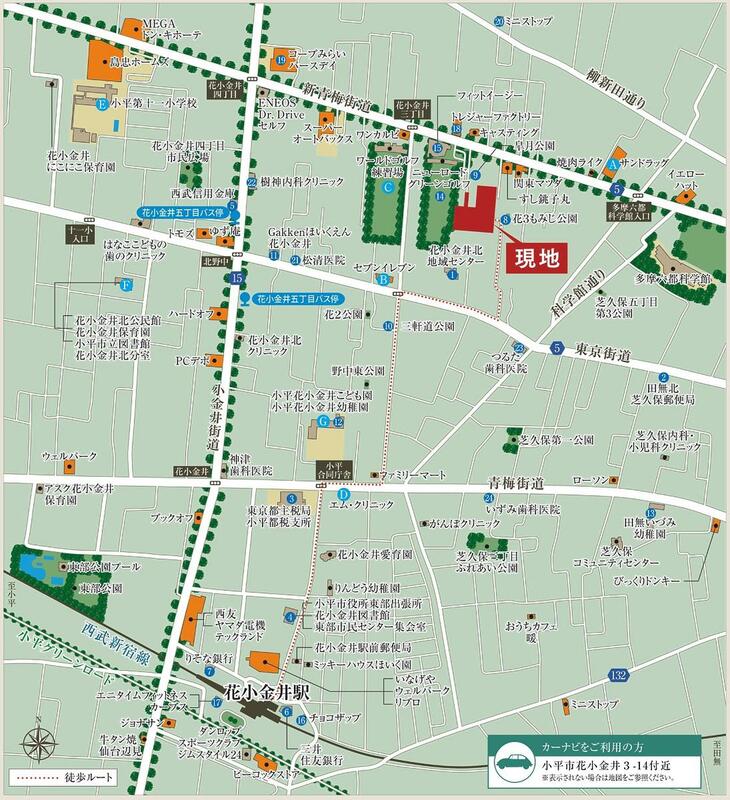西武新宿線「花小金井」駅 徒歩17分~19分 JR中央線「武蔵小金井」駅 西武バス乗車14分 「新青梅街道」バス停徒歩9分~11分 |