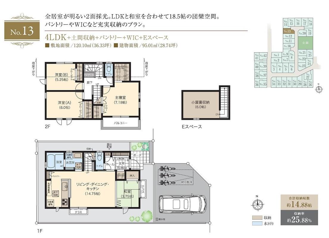 13号棟 間取り 4LDK 価格 5480万円 建物面積 95.01m2 土地面積 120.1m2 -