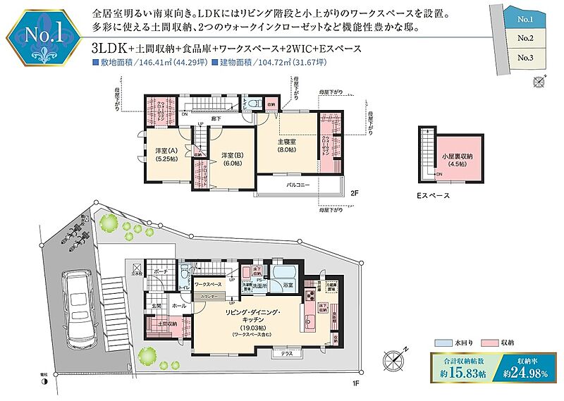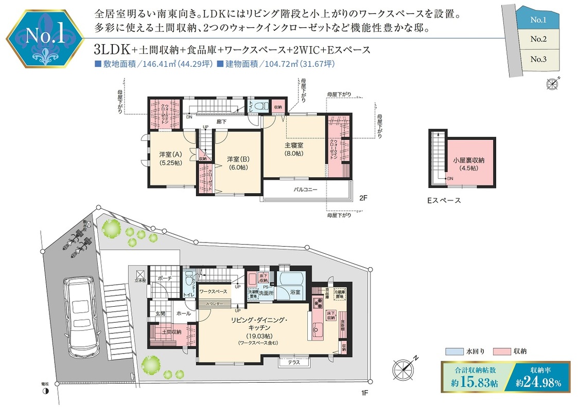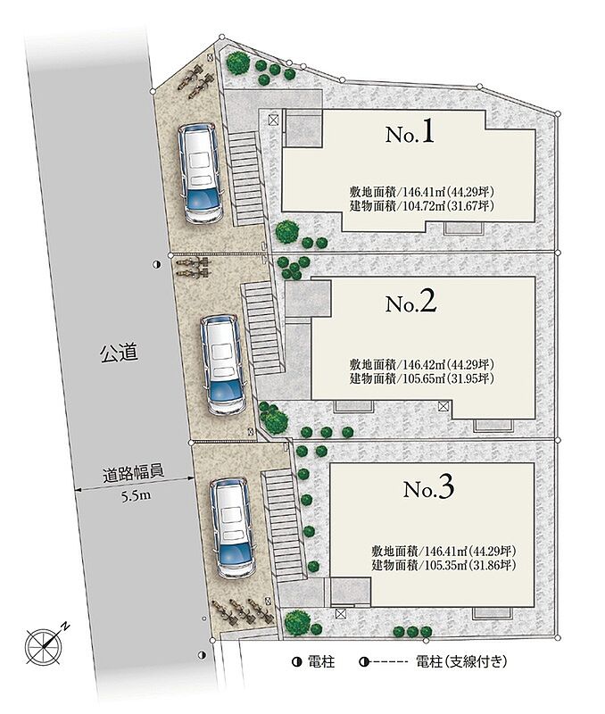 | 建物面積 | 104.72m2 | 土地面積 | 146.41m2 |
