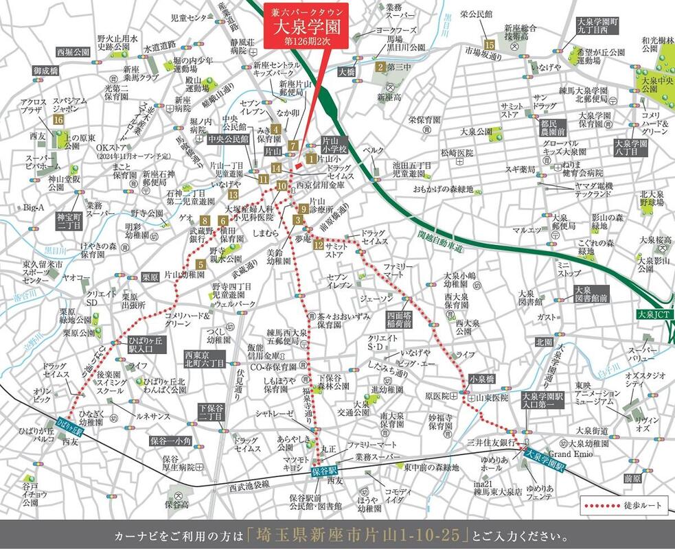 西武池袋線「ひばりヶ丘」駅 バス乗車8分 「片山小学校」バス停徒歩3分 西武池袋線「大泉学園」駅 バス15分 「中沢」バス停徒歩1分 西武池袋線「保谷」駅 徒歩31分~32分 |