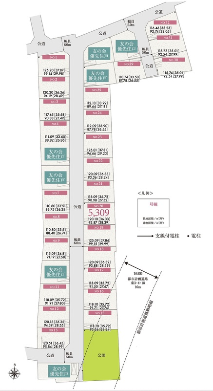 魅力1 ◆総32区画のビッグタウン◆ 敷地110m2~、LDKやバルコニーが南向き!
