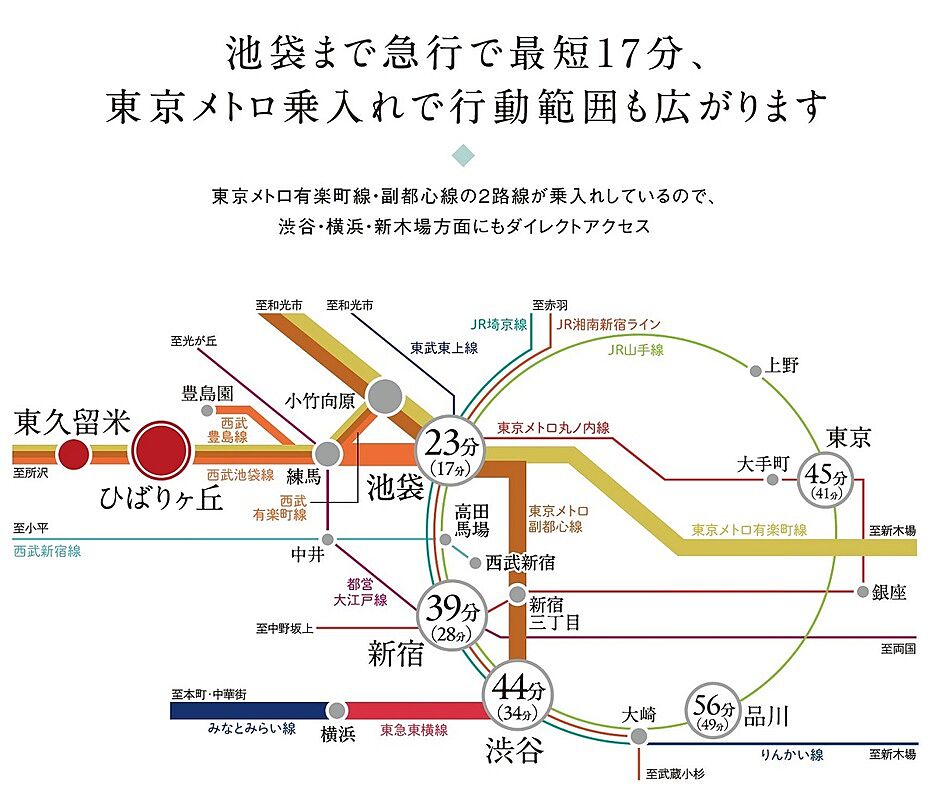■西武池袋線の2駅利用で都心や主要駅へ直通!ひばりヶ丘駅、田無駅、東久留米駅へバスアクセスも。