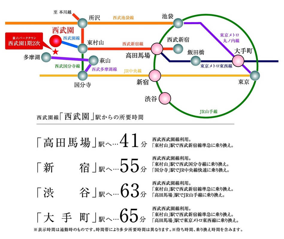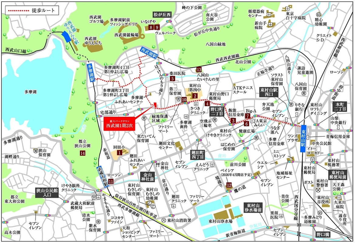 西武西武園線「西武園」駅 徒歩8分 西武多摩湖線「多摩湖」駅 徒歩11分 西武国分寺線「東村山」駅 徒歩20分 |