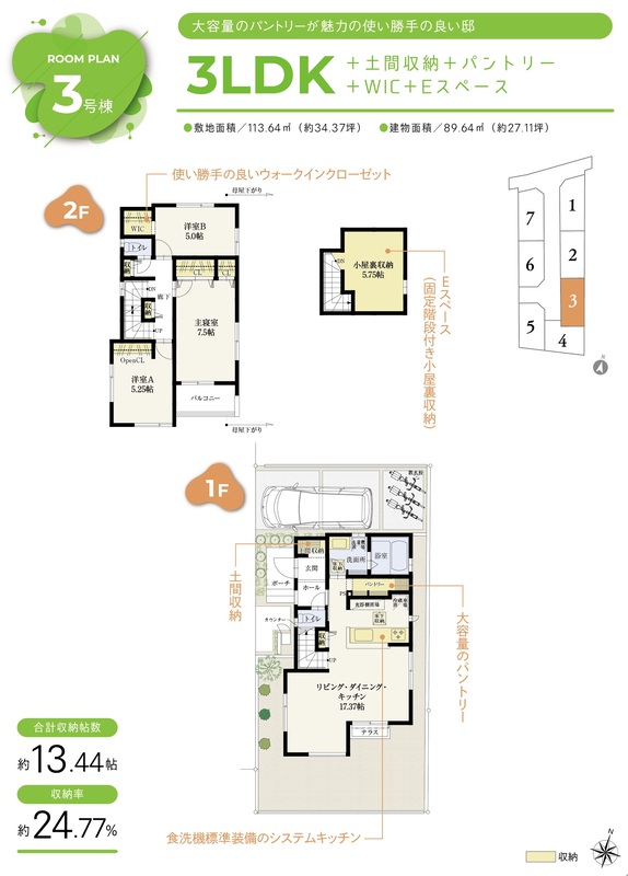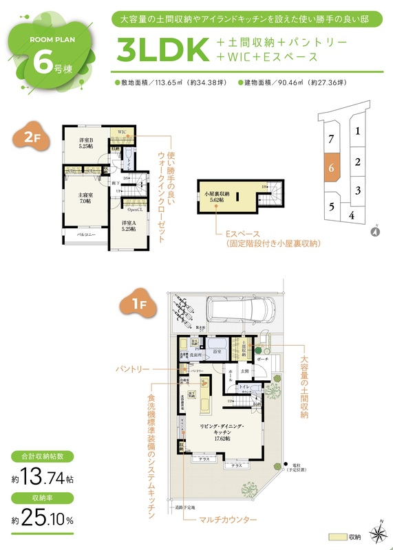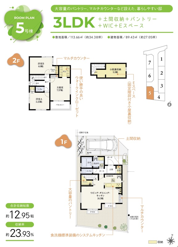 ■敷地面積113m2超~!生活動線にこだわり、Eスペース(固定階段で出入りしやすい小屋裏収納)など充実収納!