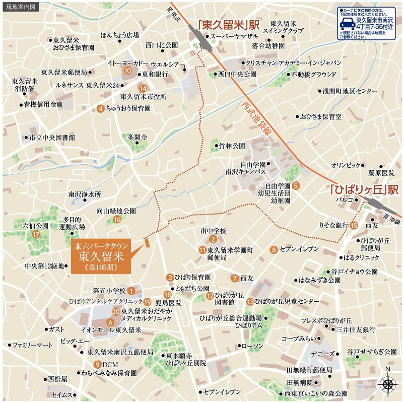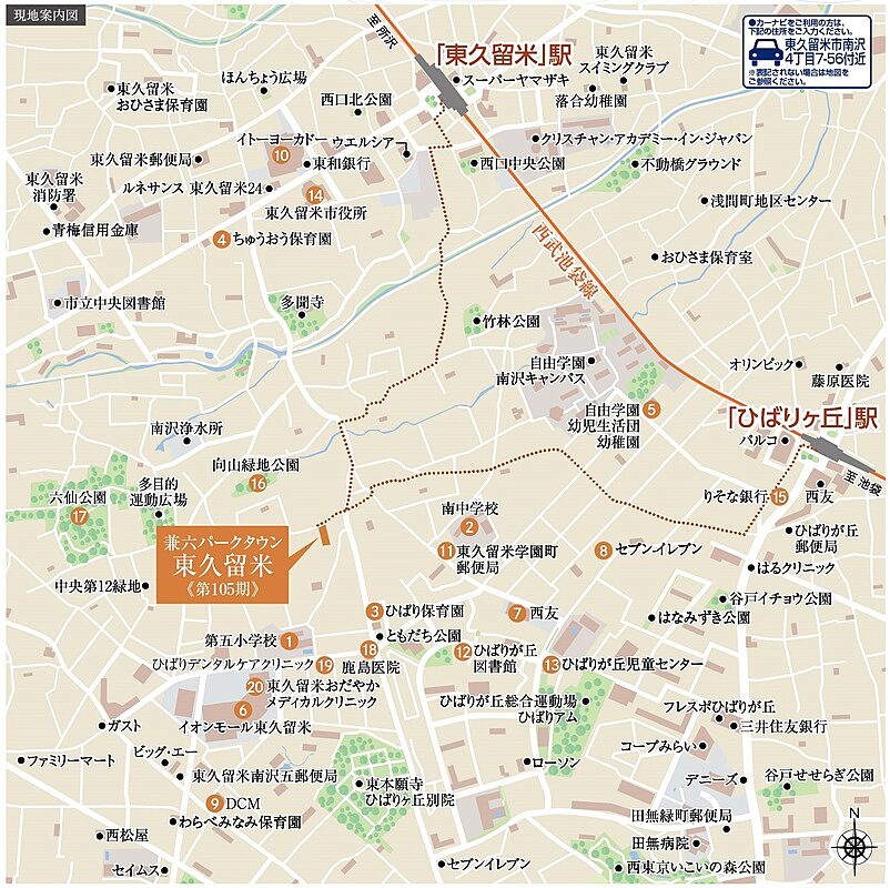 西武池袋線「東久留米」駅 徒歩18分 西武池袋線「ひばりヶ丘」駅 徒歩19分 西武池袋線「ひばりヶ丘」駅 西武バス乗車8分「東京道」バス停 徒歩6分 |