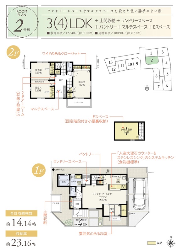 2号棟 間取り 3LDK 価格 4521万円 建物面積 100.9m2 土地面積 122.4m2 -