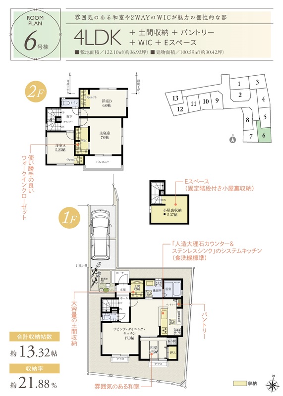 6号棟 間取り 4LDK 価格 4172万円 建物面積 100.59m2 土地面積 122.1m2 -