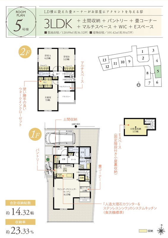 5号棟 間取り 3LDK 価格 4408万円 建物面積 101.42m2 土地面積 120.09m2 -