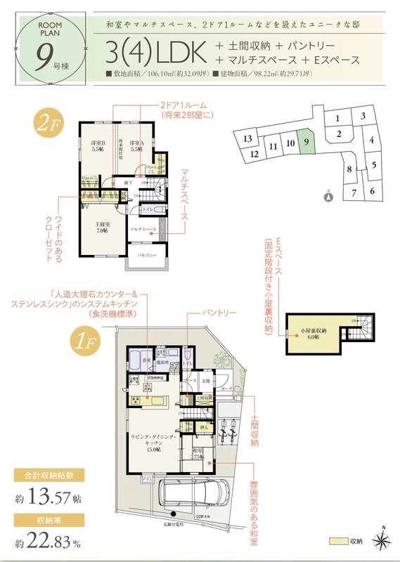 9号棟 間取り 3LDK 価格 4301万円 建物面積 98.22m2 土地面積 106.1m2