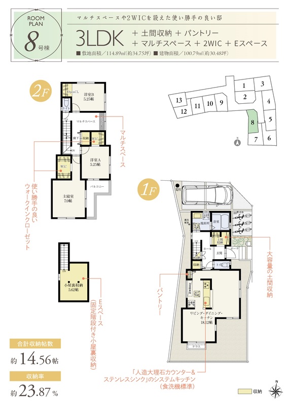 8号棟 間取り 3LDK 価格 4342万円 建物面積 100.79m2 土地面積 114.89m2 -