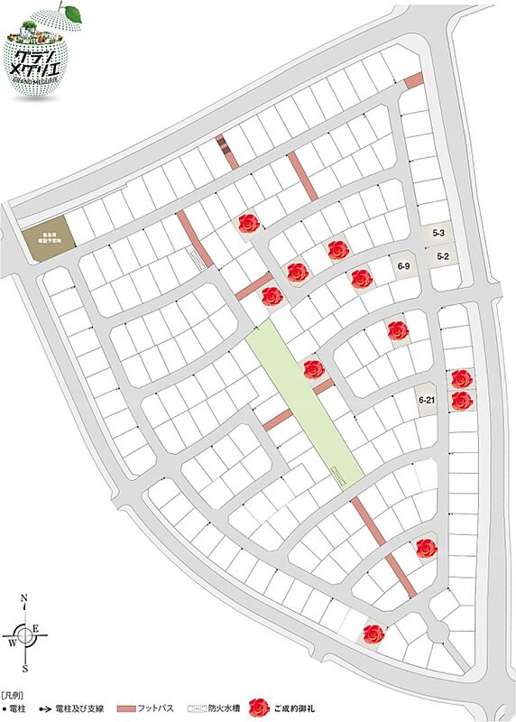 | 間取り | 3LDK(5-2号地、5-3号地)、4LDK(6-9号地、6-21号地) | 建物構造 | 軽量鉄骨2階建(4戸) |