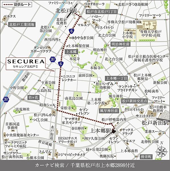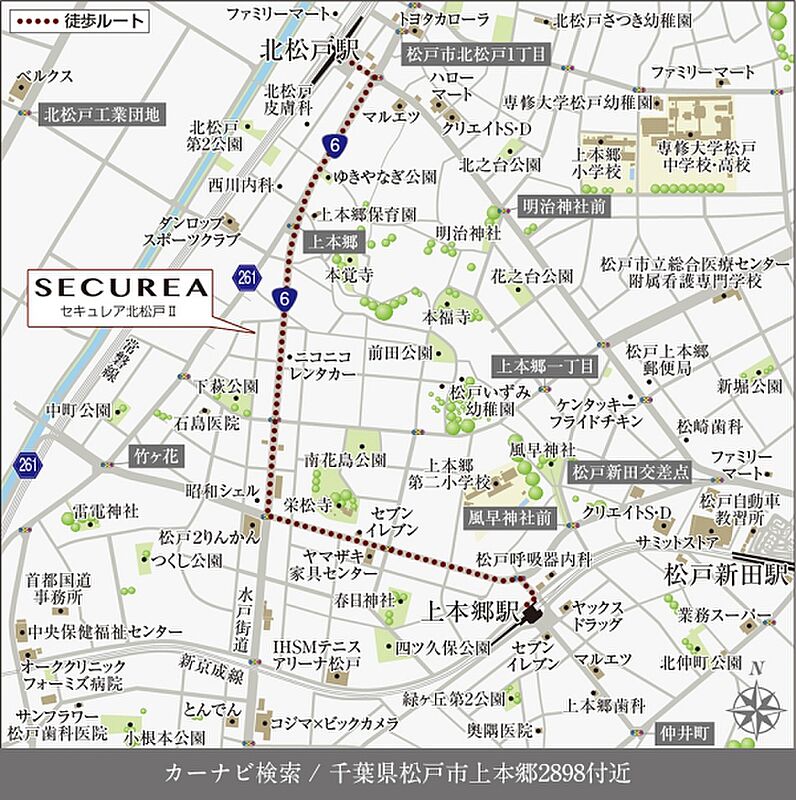JR常磐線「北松戸」駅 徒歩9分~10分 京成松戸線「上本郷」駅 徒歩14分~14分 |