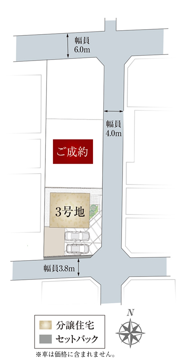 | 駐車場 | 2台 | 道路の幅員 | 3.8m~4m(アスファルト舗装) |