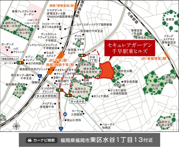 - JR鹿児島本線「千早」駅 徒歩9分~11分西鉄貝塚線「西鉄千早」駅 徒歩9分~11分