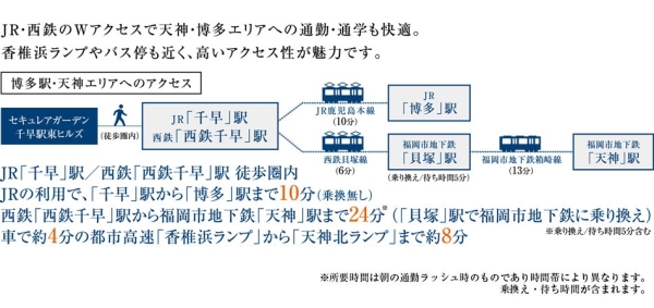 JR鹿児島本線「千早」駅 徒歩9分~11分 西鉄貝塚線「西鉄千早」駅 徒歩9分~11分 |