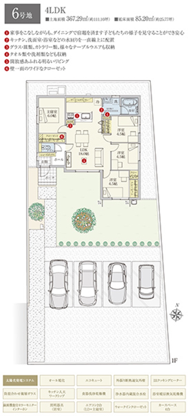 | 建物面積 | 85.20m2(6号地) | 土地面積 | 367.29m2(6号地) 私道負担なし |