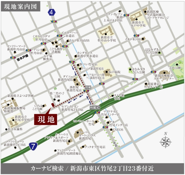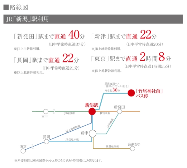 JR白新線「東新潟」駅 徒歩26分~26分 JR上越新幹線「新潟」駅 徒歩44分~45分 |