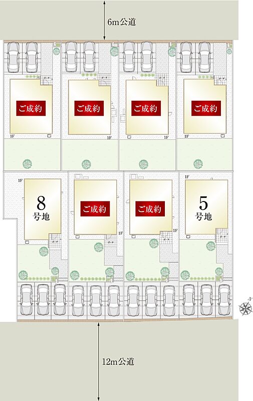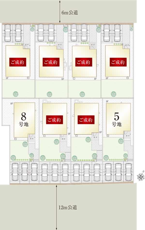 | 建物面積 | 105.70m2(5号地)、100.72m2(8号地) | 土地面積 | 187.84m2(5号地)、191.28m2(8号地) 全て私道負担なし |