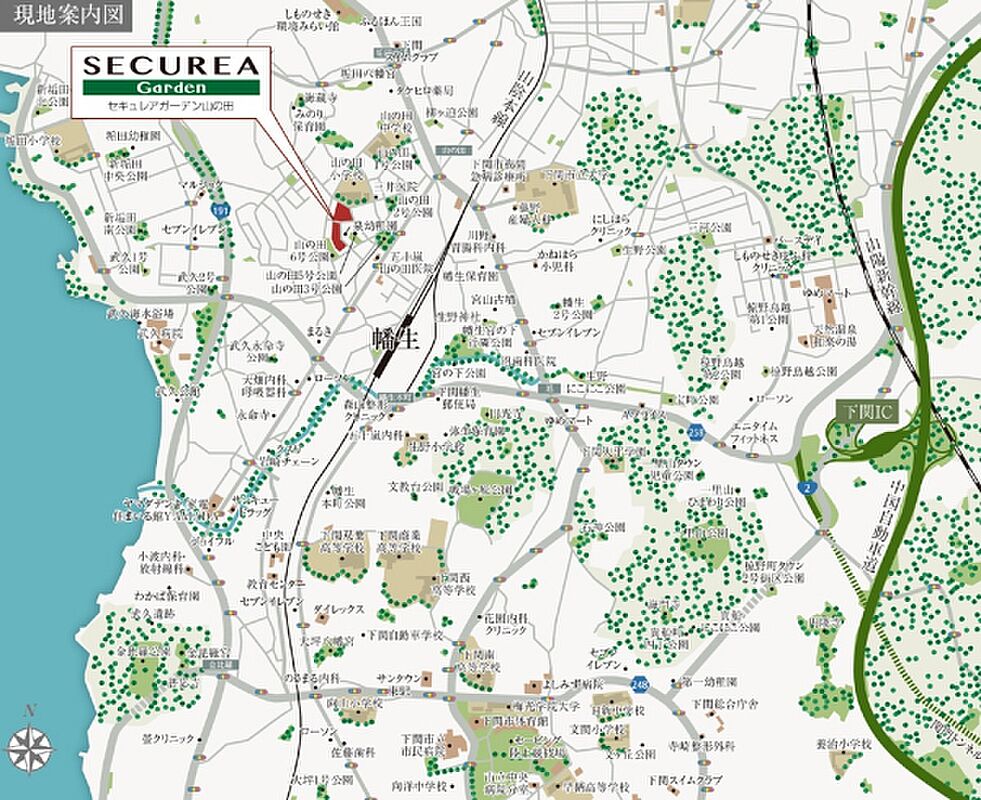 下関市立山の田小学校、下関市立山の田中学校が徒歩圏内