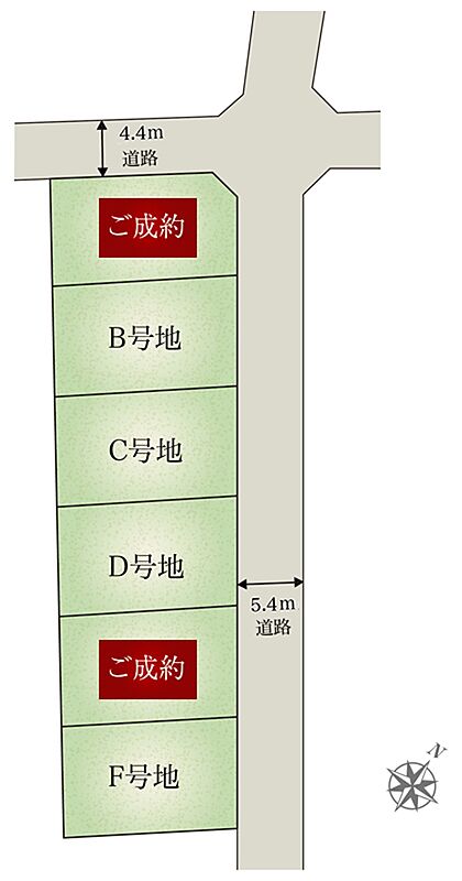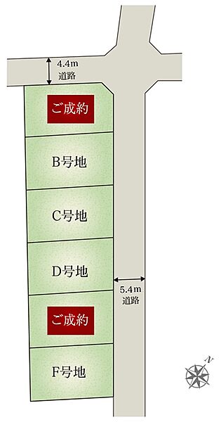 | 建物面積 | 94.73m2(B号地)、98.20m2(C号地)、94.73m2(D号地)、97.38m2(F号地) | 土地面積 | 126.64m2(B号地)、123.05m2(C号地)、123.79m2(D号地)、121.73m2(F号地) 私道負担なし |