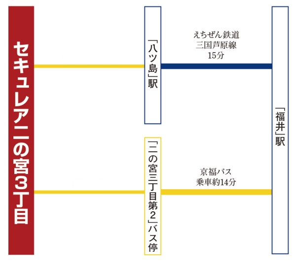 えちぜん鉄道三国芦原線「八ツ島」駅 徒歩16分~16分 ハピラインふくい「福井」駅 徒歩40分~40分 |
