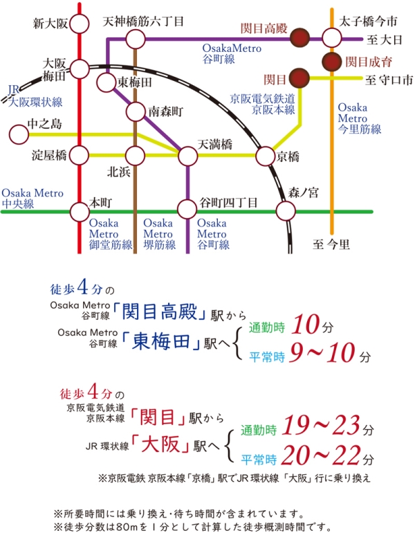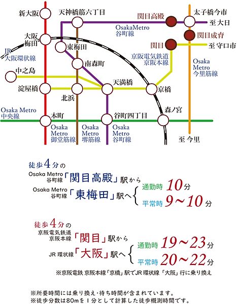Osaka Metro今里筋線「関目成育」駅 徒歩3分~3分 Osaka Metro谷町線「関目高殿」駅 徒歩4分~4分 京阪本線「関目」駅 徒歩4分~4分 |