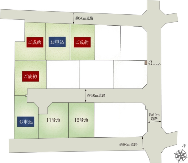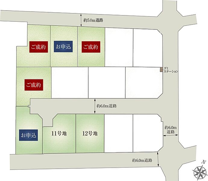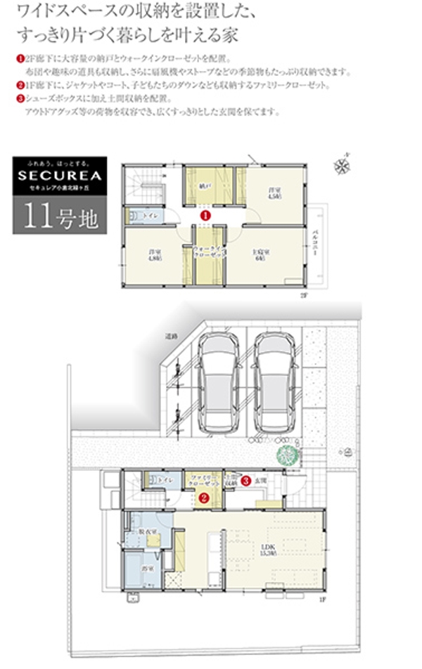 | 建物面積 | 91.08m2(11号地)、101.85m2(12号地) | 土地面積 | 177.02m2(11号地)、168.07m2(12号地) 全て私道負担なし |