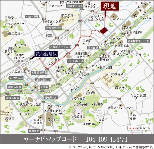 JR佐世保線「武雄温泉」駅 徒歩13分~14分 JR西九州新幹線「武雄温泉」駅 徒歩13分~14分 |