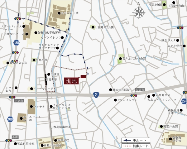- ※地図、航空写真情報および地形ならびに周辺のお店・施設は、必ずしも現況を表すものではありません。