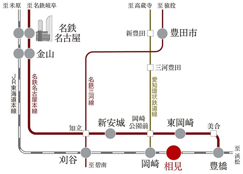 JR東海道本線「相見」駅まで徒歩7分、近くにはカメリアガーデン幸田。
