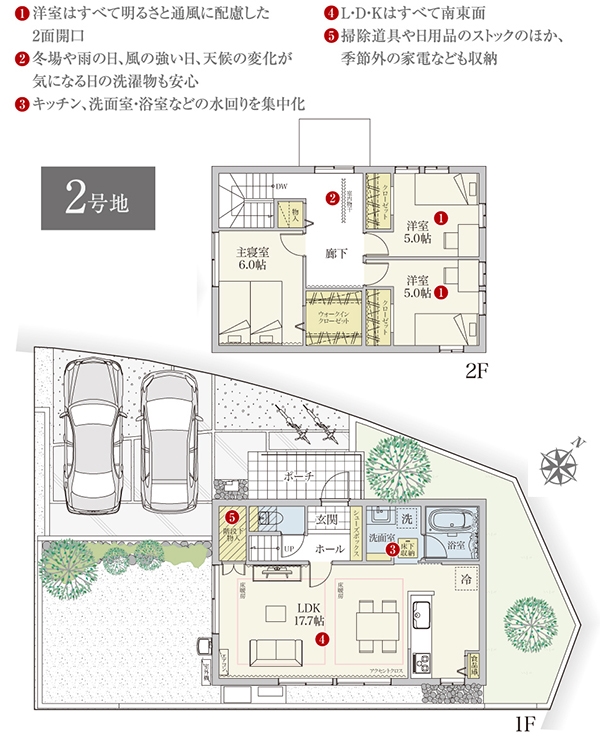 | 建物面積 | 94.40m2(2号地) | 土地面積 | 153.59m2(2号地) 私道負担なし |