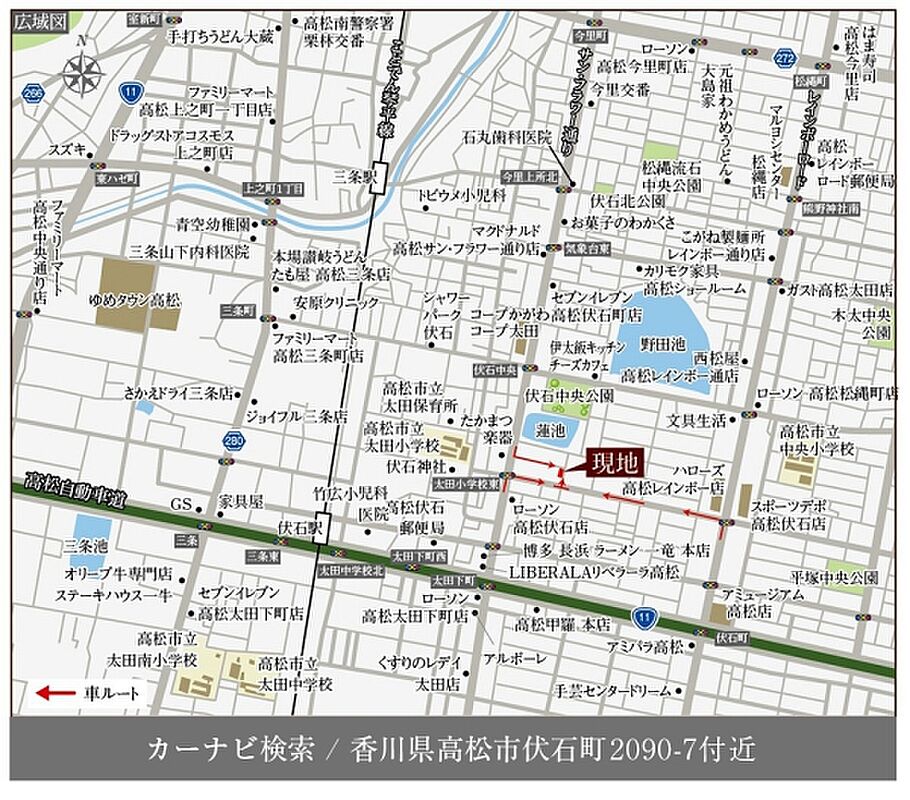 高松琴平電気鉄道琴平線「伏石」駅 徒歩10分~11分 JR予讃線「高松」駅 徒歩67分~67分 JR予讃線「高松」駅 徒歩67分~67分 |