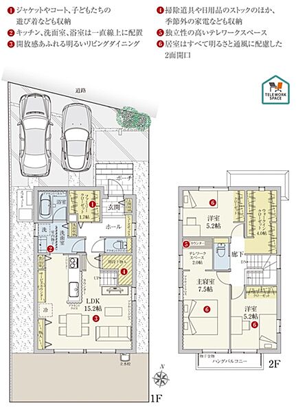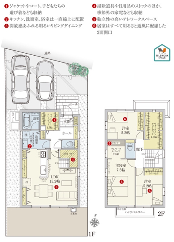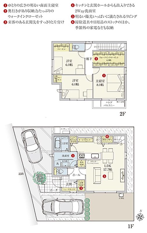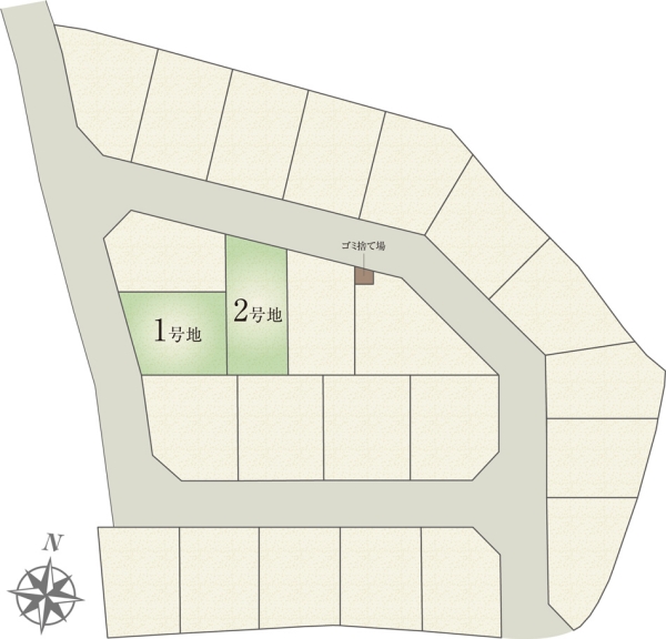 | 建物面積 | 106.32m2(1号地)、103.84m2(2号地) | 土地面積 | 132.33m2(1号地)、134.71m2(2号地) 全て私道負担なし |