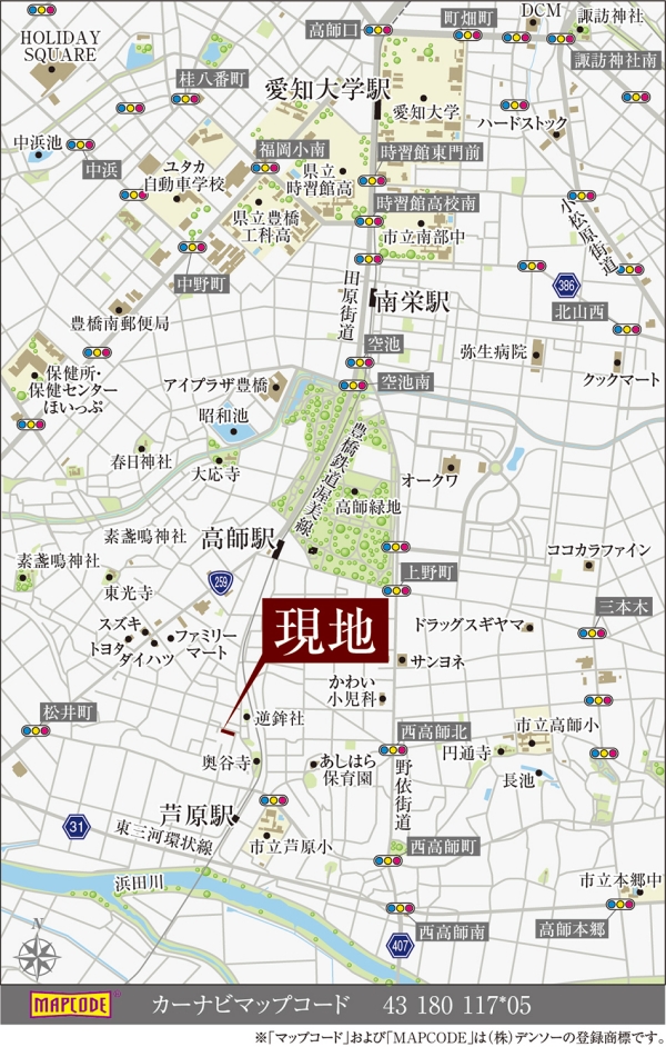 - ※地図上に表示される各種アイコンなどの情報は、おおよその所在地を表すものであり、物件・施設などの地点を保証するものではありません。