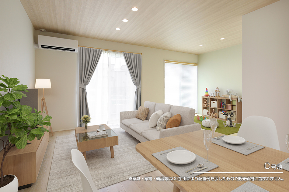 - ※完成予想図やCG合成画像は、門塀・植栽・庭・外観等、実際とは多少異なる場合があります。