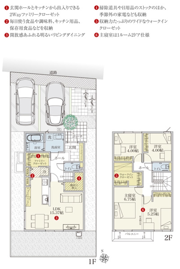 | 建物面積 | 97.70m2(H号地)、97.70m2(I号地) | 土地面積 | 135.83m2(H号地)、140.86m2(I号地) 全て私道負担なし |