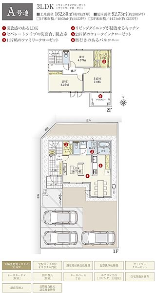 | 建物面積 | 92.73m2(A号地) | 土地面積 | 162.80m2(A号地) 私道負担なし |