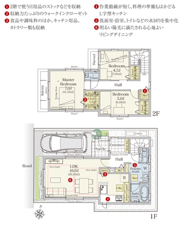 | 建物面積 | 86.94m2(1号地) | 土地面積 | 80.39m2(1号地) 私道負担なし |