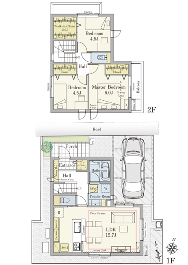 | 建物面積 | 84.47m2(1号地) | 土地面積 | 90.68m2(1号地) 私道負担なし |